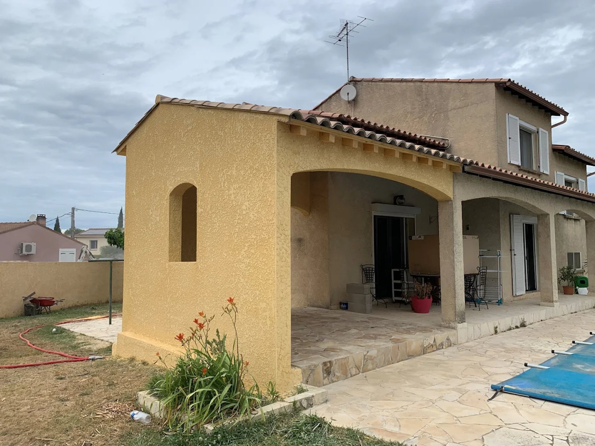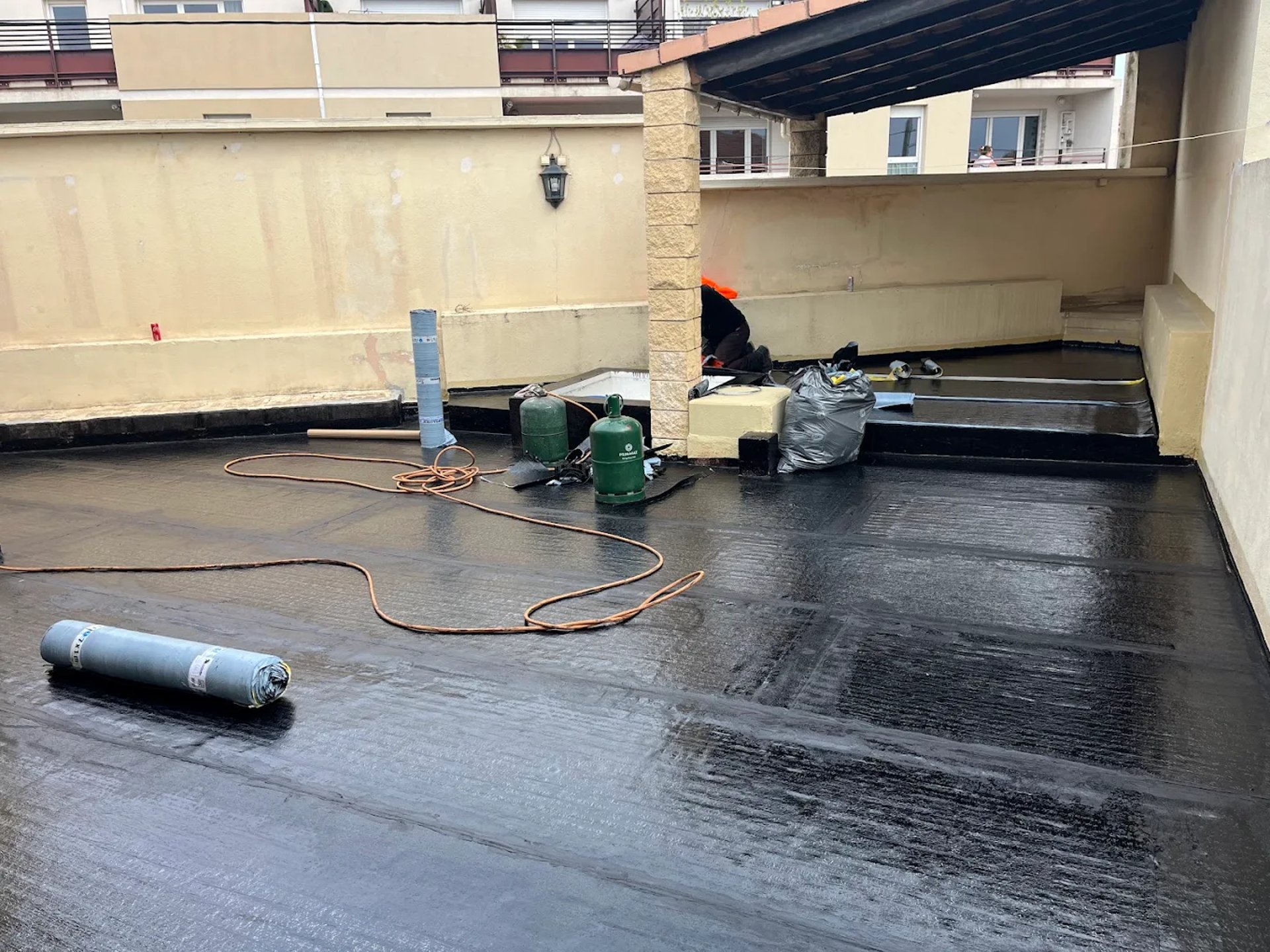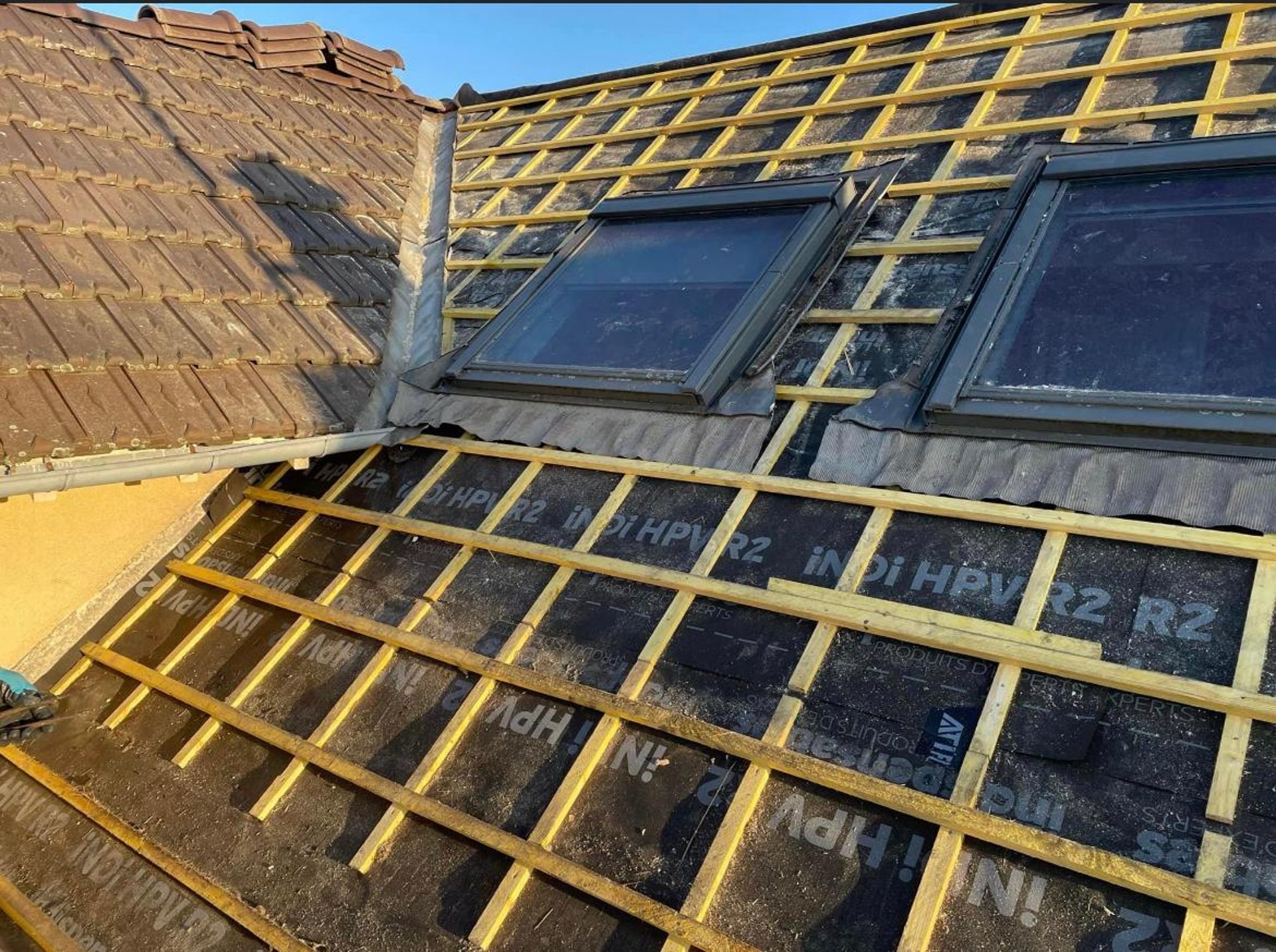 a person wearing blue gloves and holding a hammer